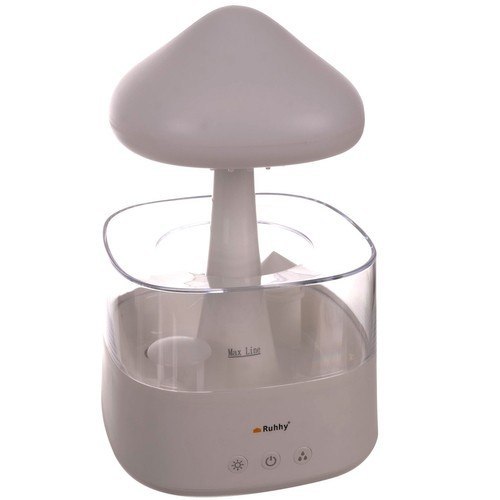 SPECYFIKACJA ? kolor: biały; materiał: PP, pozostałe: PC + silikon + stal nierdzewna + ABS; moc: 10 W; efekt deszczu: tak; nawilżanie: tak; pojemność: 450 ml; 8 kolorów świecenia; ilość LED: 6; antypoślizgowa obręcz z silikonu pod spodem: tak; długość przewodu zasilającego: 100 cm; wymiary: 26 x 16 x 16 cm; waga: 0,6 kg; waga w opakowaniu: 1,2 kg.