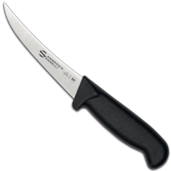 Nóż marki Ambrogio Sanelli z linii SUPRA to profesjonalne narzędzie przeznaczone dla szefów kuchni. Sprawdzi się szczególnie do oddzielania mięsa od kości. Posiada ostrze wykonane z wysokiej jakości stali nierdzewnej NITRO-B, w której dodatek cząsteczek azotu znacznie polepsza właściwości antykorozyjne oraz końcową twardość po ulepszaniu cieplnym. Ergonomiczny uchwyt wykonany został z trwałego tworzywa SEBS, które jest elastyczne i odporne na działanie czynników atmosferycznych, ozonu i UV. Nóż nadaje siędo sterylizacji, jest wysoce odporny na uderzenia i korozję. Nie nadaje się do mycia w zmywarce.