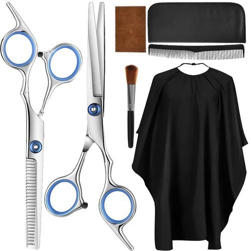 DUŻY ZESTAW? cały zestaw zawiera 7 elementów. Jest w nim peleryna fryzjerka, która ochroni ubranie przed pobrudzeniem podczas zabiegów fryzjerskich. 2 pary nożyczek. Jest także grzebień, pędzel i ściereczka do czyszczenia nożyczek.Całość bardzo przydatna w trakcie strzyżenia oraz innych zabiegów fryszerskich.