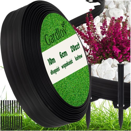 Obrzeże ogrodowe 6cm x 10m czarne z 20 kołkami ? elastyczne obrzeża trawnikowe do ogrodu!