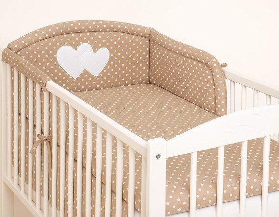 Ochraniacz do łóżeczka na szczebelki uniwersalny - Serduszka grochy na brązie