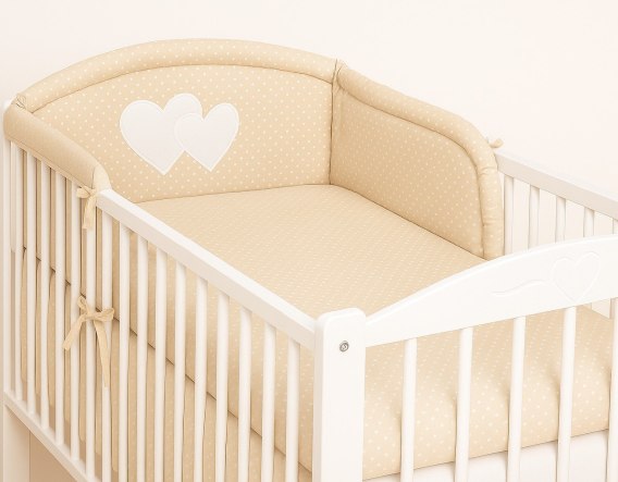 Ochraniacz do łóżeczka na szczebelki uniwersalny - Serduszka kropki na beżu
