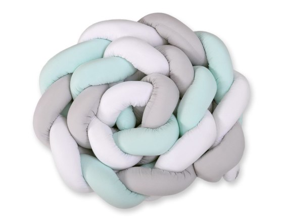Ochraniacz warkocz pleciony do łóżeczka XXL - biało-szary - miętowy
