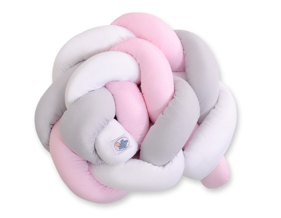 Ochraniacz warkocz pleciony do łóżeczka - biało-szaro-różowy