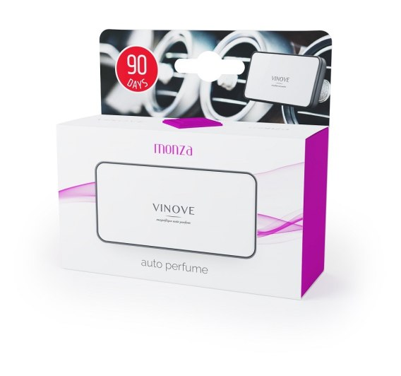 VINOVE - EKSKLUZYWNE PERFUMY SAMOCHODOWE Nowa marka perfum samochodowych, stworzona przez polskich pasjonatów we współpracy z francuskimi mistrzami sztuki perfumeryjnej i włoskimi projektantami oraz naukowcami. Do ich stworzenia zastosowano technologię XXI wieku. Wykorzystując wiedzę, otwartość i doświadczenie zespołu naukowców i wspólnie z nimi udało się skondensować zapachy w nowatorskim polimerze. Nadano mu taki kształt, by powietrze z wywietrzników samochodowych delikatnie opływało polimerowy labirynt, uwalniając zapach subtelnie i długotrwale ? aż do 90 dni. Projektując nośnik zapachu brano pod uwagę przede wszystkim jego walory użytkowe: długotrwałość uwalniania zapachu, bezpieczeństwo dla tapicerki i kokpitu samochodu, a także ekskluzywny wygląd, współgrający ze stylistyką nowoczesnych aut. Vinove Monza - damski zapach do samochodu MONZA to elektryzujący zapach kobiet błyskotliwych, kreatywnych i zdecydowanych. Aromat słodkiej obietnicy i dojrzałego seksapilu. MONZA to połączenie sprzeczności, świeżości ananasa i brzoskwiń z bujnym bukietem amarantowych róż oraz słodyczą czekolady i karmelu. Nuta głowy: neroli, bergamotka, ananas, brzoskwinia Nuta serca: fiołek, jaśmin, róża Nuta bazowa: czekolada, karmel, paczula Wymiary: 7.4 x 3.7 cm (głębokość 2.2 cm bez zaczepu lub 5.3 cm z zaczepem) Opakowanie: Waga: 0.06 kg Wymiary: 11.1 × 6.7 × 4.2 cm