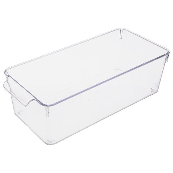 Kuchenny pojemnik do przechowywania produktów spożywczych. Świetnie sprawdzi się jako organizer do lodówki. Dzięki przezroczystej formie można z łatwością zobaczyć zawartość pojemnika. Jest łatwy w czyszczeniu i wygodny w użytkowaniu, dzięki praktycznemu uchwytowi. Pojemnik nie posiada pokrywki. Przydatny w każdym domu.