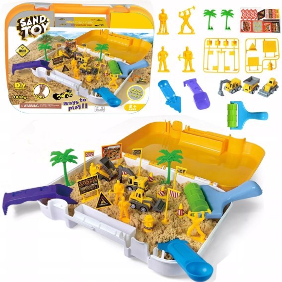 Piasek Kinetyczny dla dzieci Magiczny Plac Budowy 1 kg Maszyny Foremki 3+