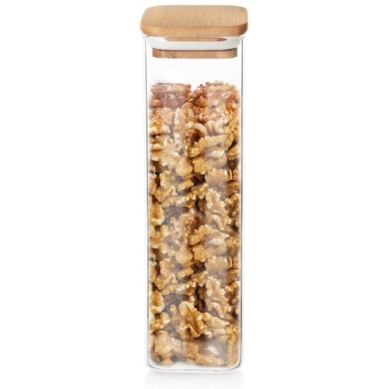 <li><strong>ODPORNE SZKŁO</strong> - Pojemnik wykonany ze szkła borokrzemowego, które cechuje się dużą odpornością na zmianę temperatur. Pokrywka wykonana jest z drewna bambusowego.</li>
