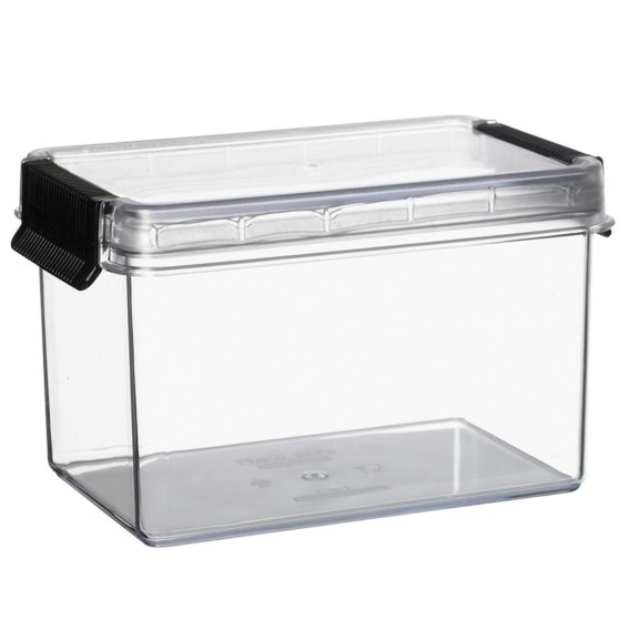 Pojemniki można układać w stosy, a przejrzysta konstrukcja umożliwia kontrolowanie zawartości zarówno z boku (do przechowywania w kredensie), jak i z góry (do przechowywania w szufladach).