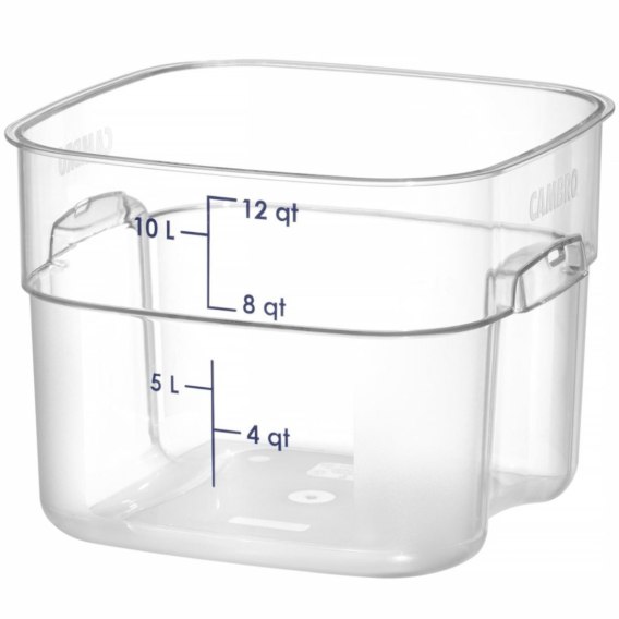 Pojemnik na żywność CamSquaresreg; Fresh Pro firmy Cambro to wielorazowe i przyjazne środowisku rozwiązanie pozwalające na wydłużenie czasu przydatności żywności. Nadaje się do mokrych i suchych produktów. Jest idealny do przechowywania ziół i przypraw, warzyw, mięs, owoców morza czy płynów. Wykonanie z poliwęglanu, materiału odpornego na odbarwianie się, kwasy spożywcze i zapachy, sprawia, że pojemnik jest niezwykle wytrzymały i tym samym doskonale się sprawdzi w profesjonalnych kuchniach. Teksturowana powierzchnia z boku, zaokrąglone rogi i ergonomiczne uchwyty zwiększają wygodę użytkowania. Pokrywki są sprzedawane oddzielne. Najważniejsze cechy: