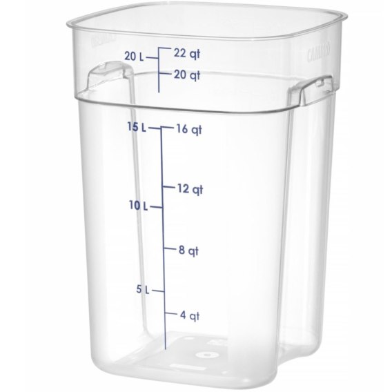 Pojemnik na żywność CamSquaresreg; Fresh Pro firmy Cambro to wielorazowe i przyjazne środowisku rozwiązanie pozwalające na wydłużenie czasu przydatności żywności. Nadaje się do mokrych i suchych produktów. Jest idealny do przechowywania ziół i przypraw, warzyw, mięs, owoców morza czy płynów. Wykonanie z poliwęglanu, materiału odpornego na odbarwianie się, kwasy spożywcze i zapachy, sprawia, że pojemnik jest niezwykle wytrzymały i tym samym doskonale się sprawdzi w profesjonalnych kuchniach. Teksturowana powierzchnia z boku, zaokrąglone rogi i ergonomiczne uchwyty zwiększają wygodę użytkowania. Pokrywki są sprzedawane oddzielne. Najważniejsze cechy: