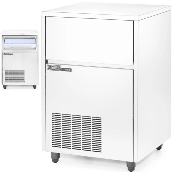Kostkarka do lodu 65 kg/24 h firmy Master Frost to wydajne urządzenie polecane do użytku w barach, pubach, kawiarniach i restauracjach. Idealnie transparentne kostki lodu z heksagonalnym otworem, wytwarzane metodą natryskową, zapewniają wysoki stopień schłodzenia przy minimalnym rozcieńczeniu napojów. Otwory wentylacyjne na froncie obudowy umożliwiające instalację kostkarki pod blatem. Elementy urządzenia są demontowane, co ułatwia ich czyszczenie. Kostkarka pracuje efektywnie do temp. otoczenia 42°C. Kompresor posiada wydłużoną wydajność i żywotność. Solidna obudowa została wykonana ze stali nierdzewnej AISI 304, a wnętrze z tworzywa sztucznego.