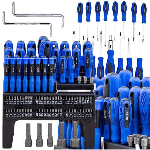 Idealny dla każdego ambitnego majsterkowicza, oferujący różnorodne wkrętaki, bity i akcesoria niezbędne w każdym warsztacie.