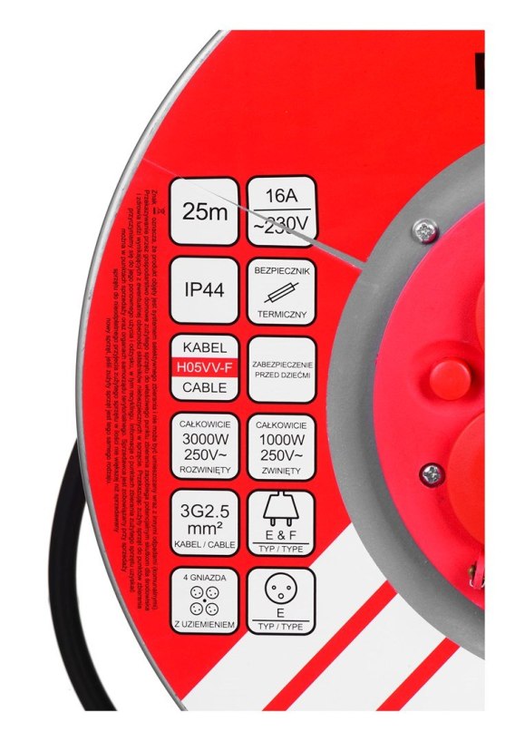 Przedłużacz elektryczny bębnowy 25M VERTEX 3x2,5mm PB25METAL czarny