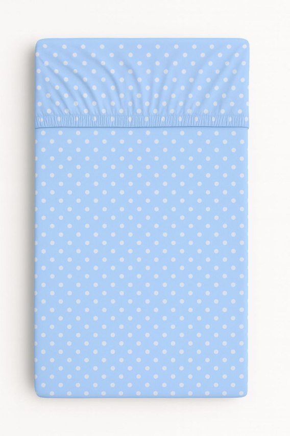 Prześcieradło bawełniane z gumką do łóżeczka 140x70 cm - groszki na błękicie