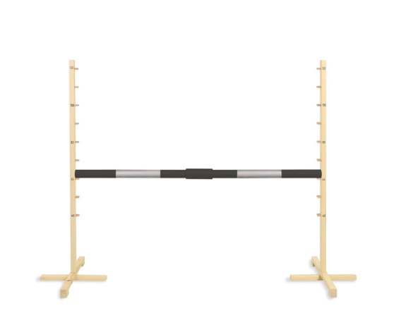 Poprzeczka ma długość aż 160 cm. Jest dwuczęściowa, składa się z dwóch belek o długości 80 cm, ze specjalnym łącznikiem. Pozwala to na uzyskanie długiej stabilnej poprzeczki. A po złożeniu belek uzyskuje się poręczną wielkość ułatwiającą przechowywanie czy transport.