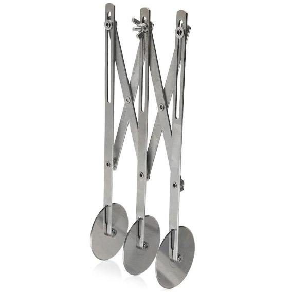 POTRÓJNY - Znacznik rozstawny do ciasta z trzema jednostronnymi ostrzami. Średnica każdego ostrza wynosi 5,5 cm a długość całkowita wraz z rączką to 24,5 cm.