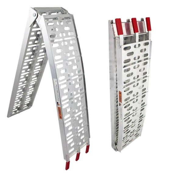 Solidna, składana rampa aluminiowa o udźwigu do 340 kg to doskonałe rozwiązanie do załadunku motocykli, skuterów, kosiarek, quadów czy sprzętu budowlanego.