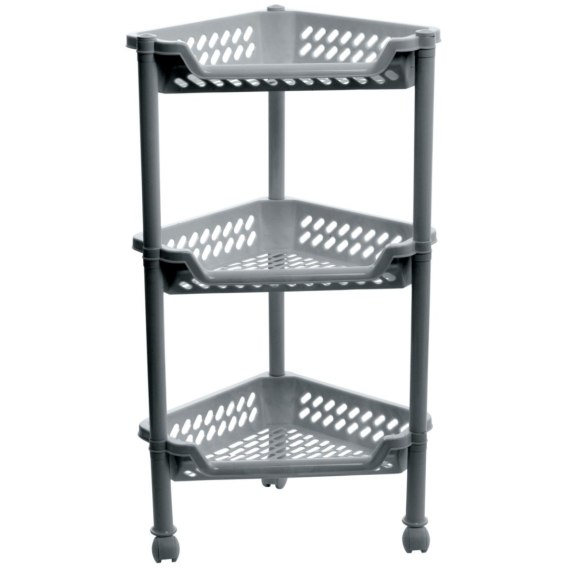 Regał narożnikowy z kółkami 3 półki Plast Team srebrny