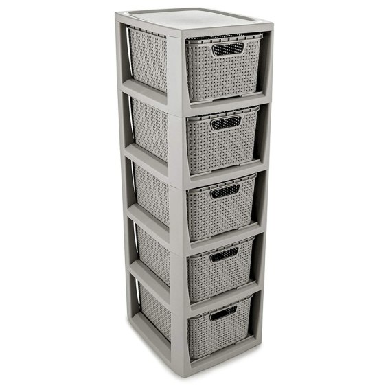 Piecioczęściowy regał BranQ Rattan jest bardzo dobrym rozwiązaniem do przechowywania na małych przestrzeniach. Wykonany bardzo estetycznie, z wysokiej jakości, bezpiecznego materiału (wolnego od ftalanów i bpa), jest idealny do takich pomieszczeń jak łazienka, garderoba, dziecięcy pokój czy domowe biuro. Produkt polski.