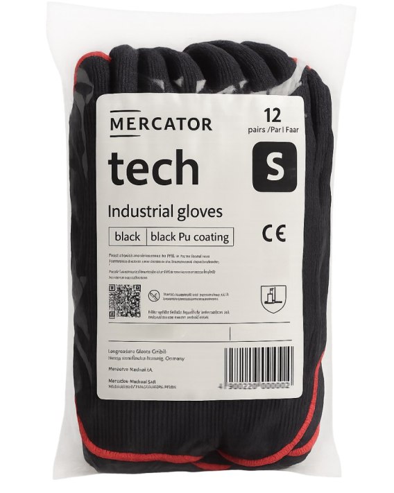 Rękawice Robocze MERCATOR Tech Black+Black PU - 12 Par (7 - S)