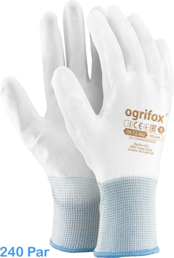Rękawice ochronne wykonane z poliestru, powlekane poliuretanem