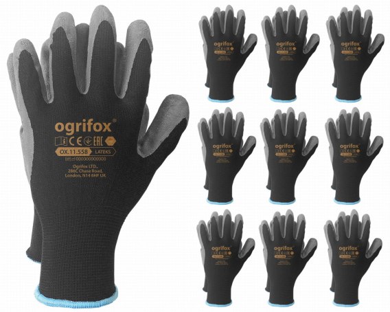 Rękawice robocze / Czarne / OX-LATEKS_BS - 10 Par (9 - L)