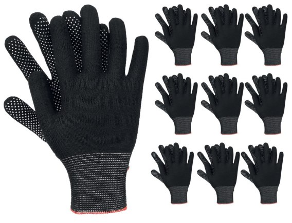 Rękawice robocze / Czarne / Rozmiar: 9 - L / OX-DOTUA_BW - 10 Par