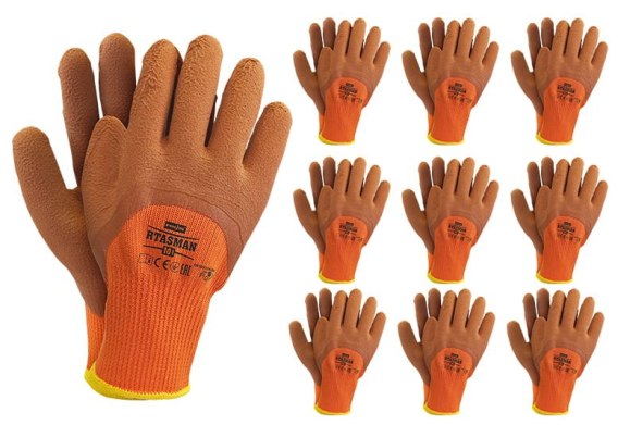 Rękawice ochronne ocieplane z dzianiną frotte, powlekane lateksem