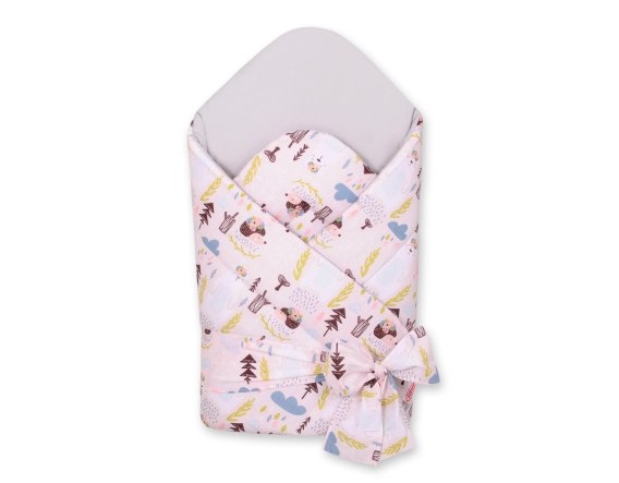 Rożek dla niemowląt z wiązaniem 2w1 usztywniany i miękki - misie i jeżyki różowe