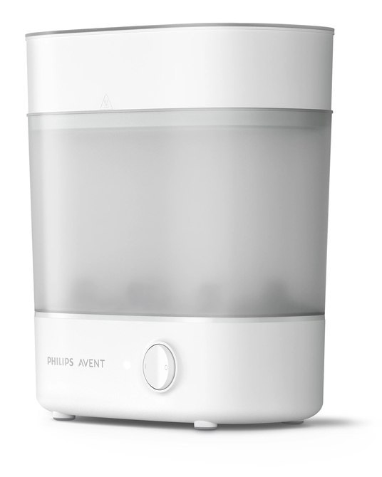 Nasz sterylizator jest smukły, a jednocześnie mieści do sześciu butelek dla dzieci Philips Avent. Zmieszczą się w nim także wszystkie innych podstawowe akcesoria, od smoczków do ręcznego laktatora.