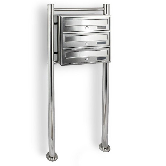 Ze względu na zwartą konstrukcję, system letterbox 3 skrzynek zajmuje niewiele miejsca. Montaż jest w ten sposób łatwy i szybki. Zakres dostawy obejmuje materiały montażowe do betonowych fundamentów.