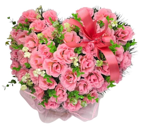 STROIK NA POMNIK SERCE KOMPOZYCJA KWIATOWA RÓŻOWE RÓŻE NA GRÓB