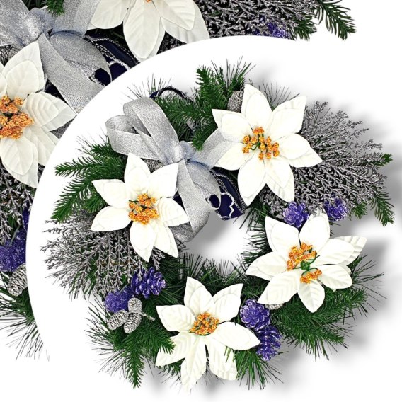 Wianki wraz z choinkami to podstawa Świątecznej aranżacji! Nasze projekty cechują się wyjątkowo gęstym splotem sztucznych gałązek iglastych (PCV), które tworzą estetycznie wyglądające tło dla unikalnej i niespotykanej kompozycji kwiatów oraz ozdób świątecznych. Starannie dobrane detale są niezwykle realistyczne i naturalne, dodając stroikowi autentyczności i podkreślając jego ciepły a zarazem uroczysty charakter.