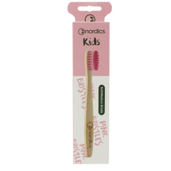 SZCZOTECZKA DO ZĘBÓW DLA DZIECI BAMBUSOWA ŚREDNIO TWARDA RÓŻOWA - NORDICS