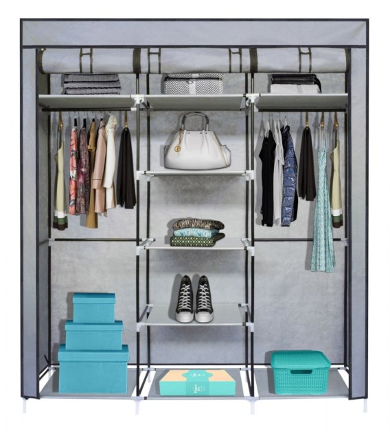 Meble tekstylne to prosty i ekonomiczny sposób na przechowywanie odzieży. Szafa posiada lekką konstrukcję, dlatego jest to idealny zamiennik do tradycyjnych, ciężkich mebli. Produkt jest szybki i łatwy do złożenia i rozłożenia. Metalowy stelaż wykonany jest z wysokiej jakości materiałów, dzięki czemu produkt jest stabilny. Poszycie wykonane jest z oddychającego materiału, zapewniającego wewnątrz odpowiednią cyrkulację powietrza. Dodatkowo półki pokryte są specjalną powłoką, która zapobiega ich zabrudzeniu.
