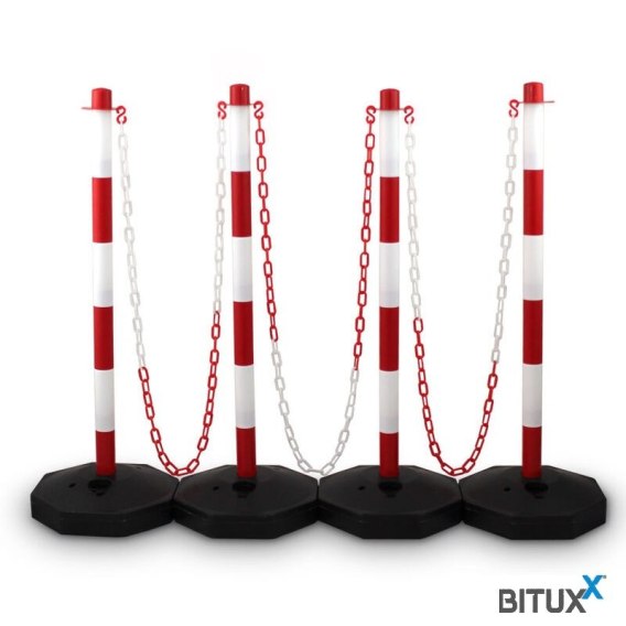 Słupki czerwono białe zabezpieczające 83cm 4szt z łańcuchami 150cm łatwy montaż