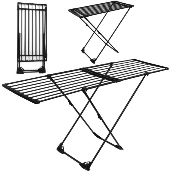 Suszarka wyróżnia się łatwością składania, co pozwala na szybkie i bezproblemowe przechowywanie w dowolnym miejscu. Po złożeniu zajmuje bardzo mało miejsca, dzięki czemu idealnie nadaje się do przechowywania w małych mieszkaniach czy ciasnych przestrzeniach.