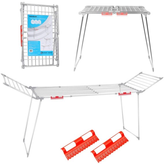 Suszarka wyróżnia się łatwością składania, co pozwala na szybkie i bezproblemowe przechowywanie w dowolnym miejscu. Po złożeniu zajmuje bardzo mało miejsca, dzięki czemu idealnie nadaje się do przechowywania w małych mieszkaniach czy ciasnych przestrzeniach.