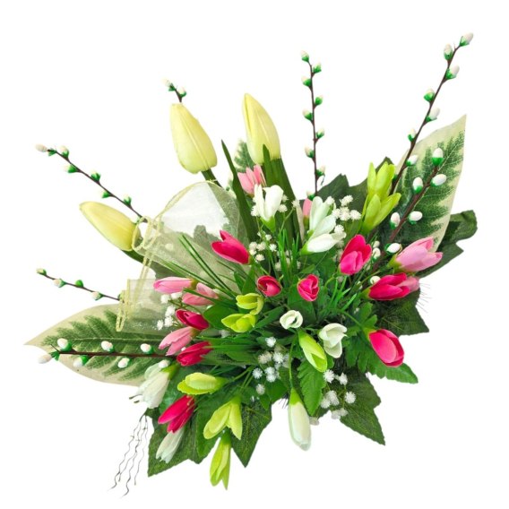 Stroik na cmentarz kompozycja kwiatowa na grób krokusy bazie tulipany