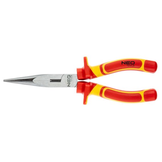 Szczypce wydłużone proste 200 mm, izolowane, polerowane głowice, rękojęść dwumateriałowa guma+plastik TPR+ABS, stal CrV, certyfikat TÜV