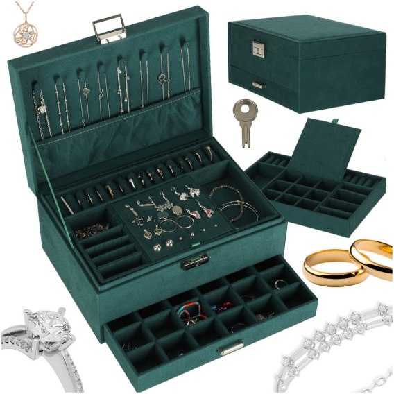 Szkatułka kuferek na biżuterię organizer zielony