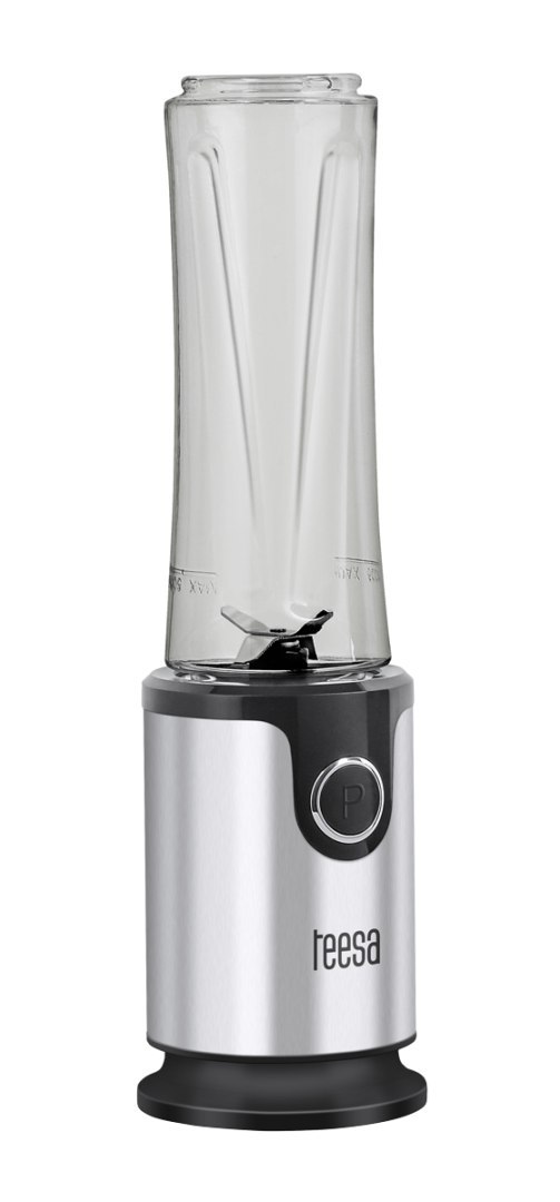 Blender personalny Teesa to propozycja dla osób aktywnych oraz takich, które mimo braku czasu starają się dbać o swoje zdrowie. Urządzenie jest niezwykle łatwe w obsłudze i dotrzyma ci kroku w każdej sytuacji. Wystarczy, że wybierzesz swoje ulubione świeże owoce lub warzywa i dodasz odrobinę jogurtu lub wody. Blender pracuje z prędkością 20000 obrotów na minutę, co w połączeniu z jego mocą 300W pozwoli szybko zamienić te składniki w wyśmienity koktajl. Co ważne, przyrządzisz go bezpośrednio w 500 ml kubku, który następnie możesz zakręcić dołączoną nakładką ułatwiającą transport i zabrać gdzie tylko chcesz: do pracy, szkoły, na spacer lub na trening. W zestawie dostępne są dwa kubki (wykonane z wolnego od BPA tritanu) więc sama zdecyduj, czy weźmiesz je ze sobą, by poczęstować koktajlem koleżankę, czy sprawisz radość drugiej połówce i zastąpisz tradycyjne kanapki do pracy jego ulubionym, zdrowym specjałem.