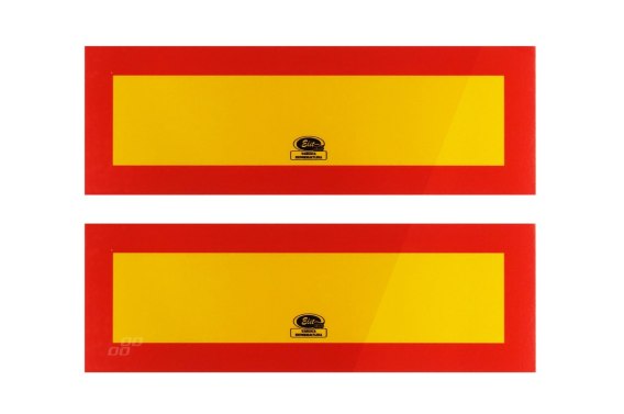 Wymiary: 30 cm x 10 cm Budowa: aluminiowa blacha o grubości 1 mm Powierzchnia: pokryta żółtym tłem odblaskowym oraz obramówka wykonany z folii fluorescencyjnej