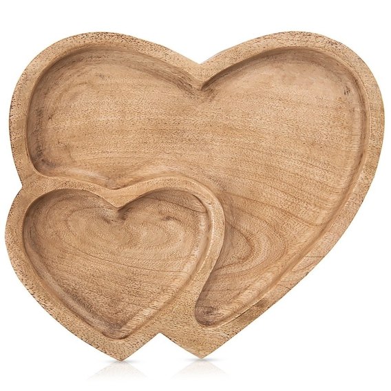 Talerz do Serwowania Drewniany MANGO Podwójne Serce 23 x 20 cm