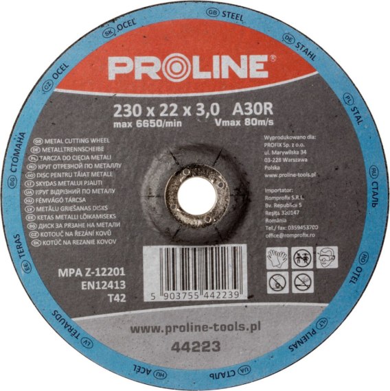 Tarcza do cięcia metalu wyp. t42, 125x2.5x22a36s proline