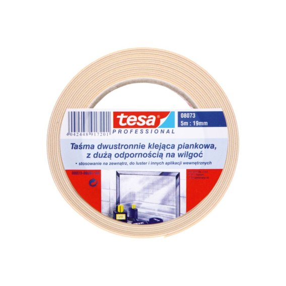 Taśma dwustronna piankowa tesafix 5m:19mm, biała