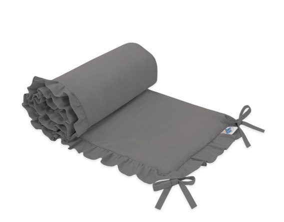 Uniwersalny ochraniacz z falbanką do łóżeczka niemowlęcego - antracyt