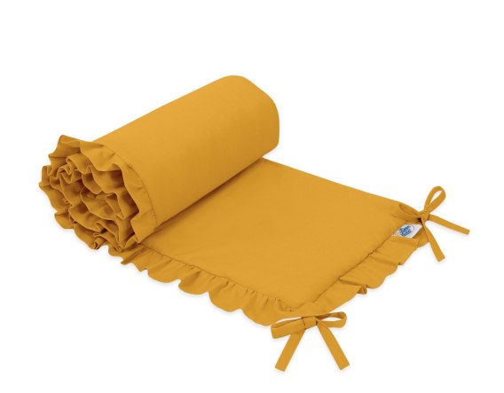 Uniwersalny ochraniacz z falbanką do łóżeczka niemowlęcego - musztardowy