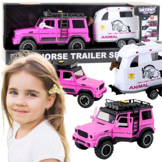 WOOPIE Zestaw Różowy Samochód Terenowy z Przyczepką i Figurką Konia